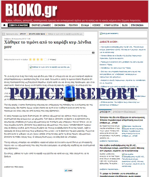 Το άρθρο διαβάστηκε αρκετές εκατοντάδες φορές πριν αποσυρθεί για άγνωστο λόγο 3 ημέρες αργότερα (στις 28/8/2012), όπως ανάλογη τύχη είχαν κι άλλα σχετικά άρθρα του στο bloko.gr.
